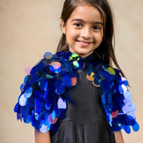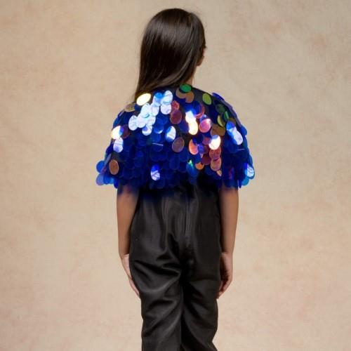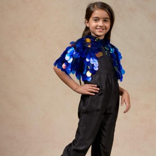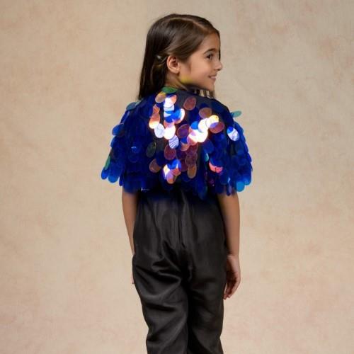 We are a prominent wholesaler & exporter of Kids Casual Wear. Our company is engaged in the manufacturing of Kids Casual Wear, featuring a hand-embroidered big sequin reflective cape with center button, paired with a pure silk black jumpsuit designed with a round neck, cut detail near the bust, and a full back concealed zipper.