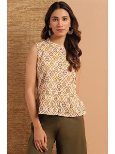 Flaunt your style with this Cream Top from Janasya. Tailored in regular fit, this top is light in weight and will keep you at ease all day long. Featuring mandarin collar with peplum style, the highlight of this top is its designer back with bow detailing which adds a superlative attractiveness. Team this top with a pair of denims and strappy sandals to look effortlessly stylish.