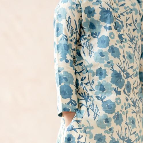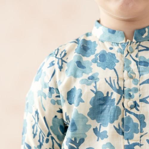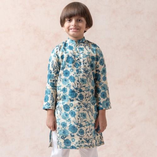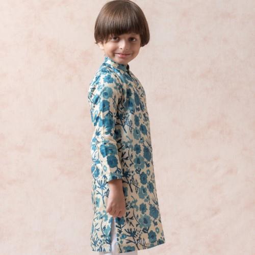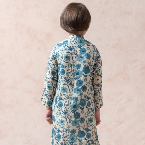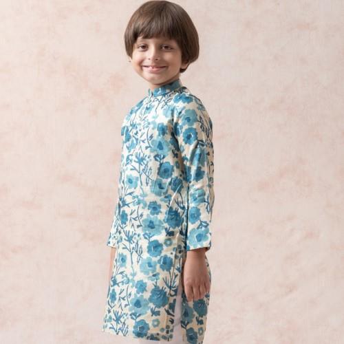 We are reckoned as an established manufacturer and exporter of Kids Floral Print Ethnic Wear. Manufacturing of a pure tussar silk floral print kurta, paired with a white straight-fit pyjama for a classic look. The garment is designed with an ease of 3 inches over the size chart measurements and includes an additional side margin of 2–3 inches for later adjustments. The inside finishing is executed in a hidden manner to ensure the stitches remain smooth and do not cause any discomfort to the child’s skin.