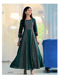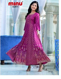 All the Fashionable women will surely like to step out in style wearing this Gold Print Anarkali Style Long Kurti with premium finish. Available in various color and sizes. We supply best prints as per latest market demand. International clients can alos contact us.