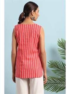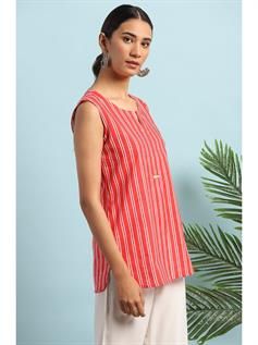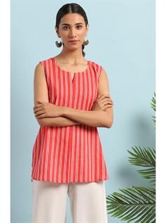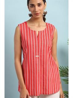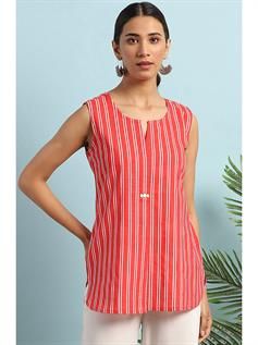 Lend your formal-wear line-up a stylish inclusion with this Red Top from Janasya. Enlivened by pin stripes with metal embellishment for contemporary appeal, the cotton slub top features round neck and pleat detail for a comfortable fit.