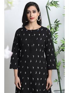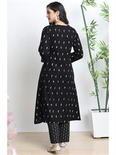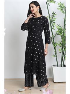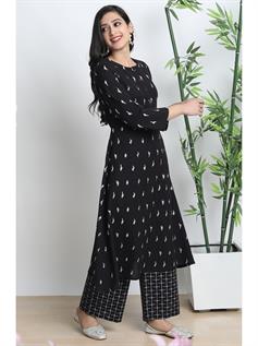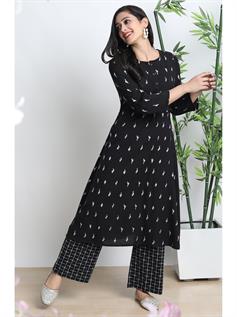 Elevate your Indian look by wearing this chic and trendy Salwar Suits with palazzo from Janasya. Crafted from cotton flex, its classy printed pattern, round neck with button placket and three quarter sleeves of this A-Line kurta enhance your attire. The geometric print palazzo has fully elasticated waist band to ensure maximum comfort. Complete your ensemble by wearing this set with a pair of heavy earrings.
