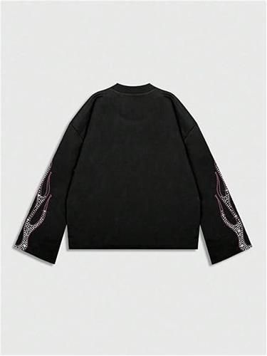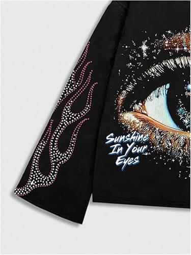 Garment construction detail : Sleeve: Long sleeve with ribbed cuffs, Neckline: Crew neck, double-stitched for durability, Print: High-quality Eye Print with durable rhinestone embellishments