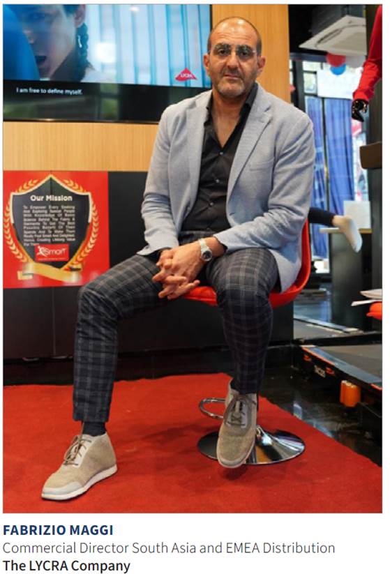 The LYCRA Company innovates and produces fibre and technology solutions for the apparel and personal care industries. Headquartered in Wilmington, Delaware, The LYCRA Company is recognised worldwide for its innovative products, technical expertise, sustainable solutions, and unmatched marketing support. Commercial Director South Asia and EMEA Fabrizio Maggi talks about the global textile industry, innovation, digital transformation, and the company’s focus on the South Asian region.