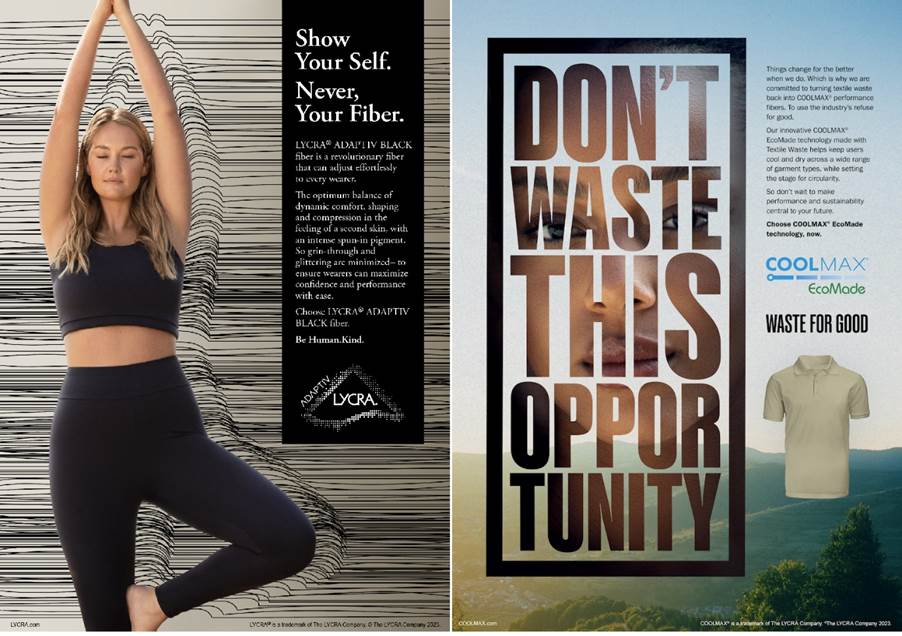The LYCRA Company provides support to mills to develop and promote fabrics and garments using our fibres and technologies, and we assist brands and retailers in promoting and communicating the features and benefits of garments made with our fibres. This may involve marketing campaigns, consumer education, and branding initiatives to highlight the enhanced comfort, fit, and performance that our fibres bring to apparel.
