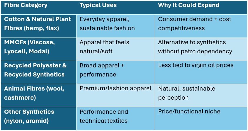 Cotton, hemp, flax (linen), and bamboo fabrics are poised to capture market share in casual wear, workwear, home textiles, and eco-conscious fashion. Casual apparel such as T-shirts, jeans, and everyday dresses could see cotton blends replace more expensive polyester options. Workwear and uniforms may also pivot towards cotton-rich fabrics for enhanced comfort and durability. Industry experts estimate that cotton and linen demand could rise 5–15 per cent in cost-sensitive markets if polyester prices spike.
